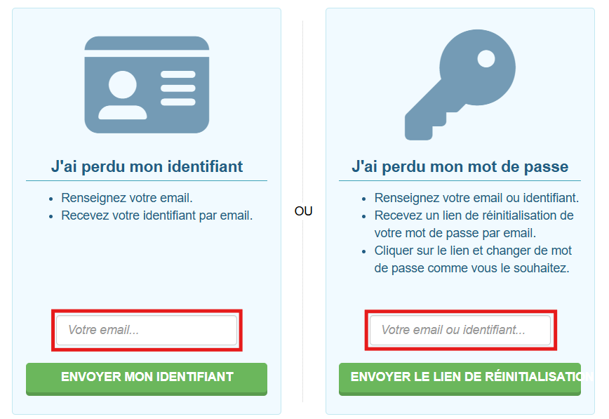 Si vous ne recevez aucun e-mail après la procédure “mot de passe oublié / identifiant oublié”, cela signifie que :